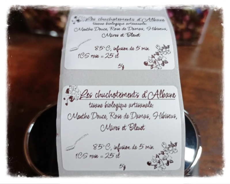Les parents ont choisi le nom du mélange qu'il souhaité faire apparaitre sur les étiquettes. J'ai créé sur une application les étiquettes et je les ai imprimé avec ma petite imprimante thermique, selon leurs exigence cela leur a beaucoup plu!